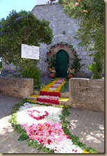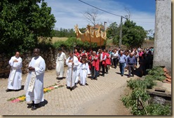 Dito isto, passo a descrever o acontecimento, colocando alguma ordem e ao mesmo tempo ilustrando com algumas imagens das muitas que recolhi, enriquecendo o texto que me proponho apresentar. O ambiente na aldeia é de festa, as ruas estão enfeitadas com pétalas de rosas e as mais variadas plantas. A Igreja encontra-se magnífica. Os seus altares carregados de flores, proporcionam um ambiente fantástico ao celebrar a Santa Eucaristia.